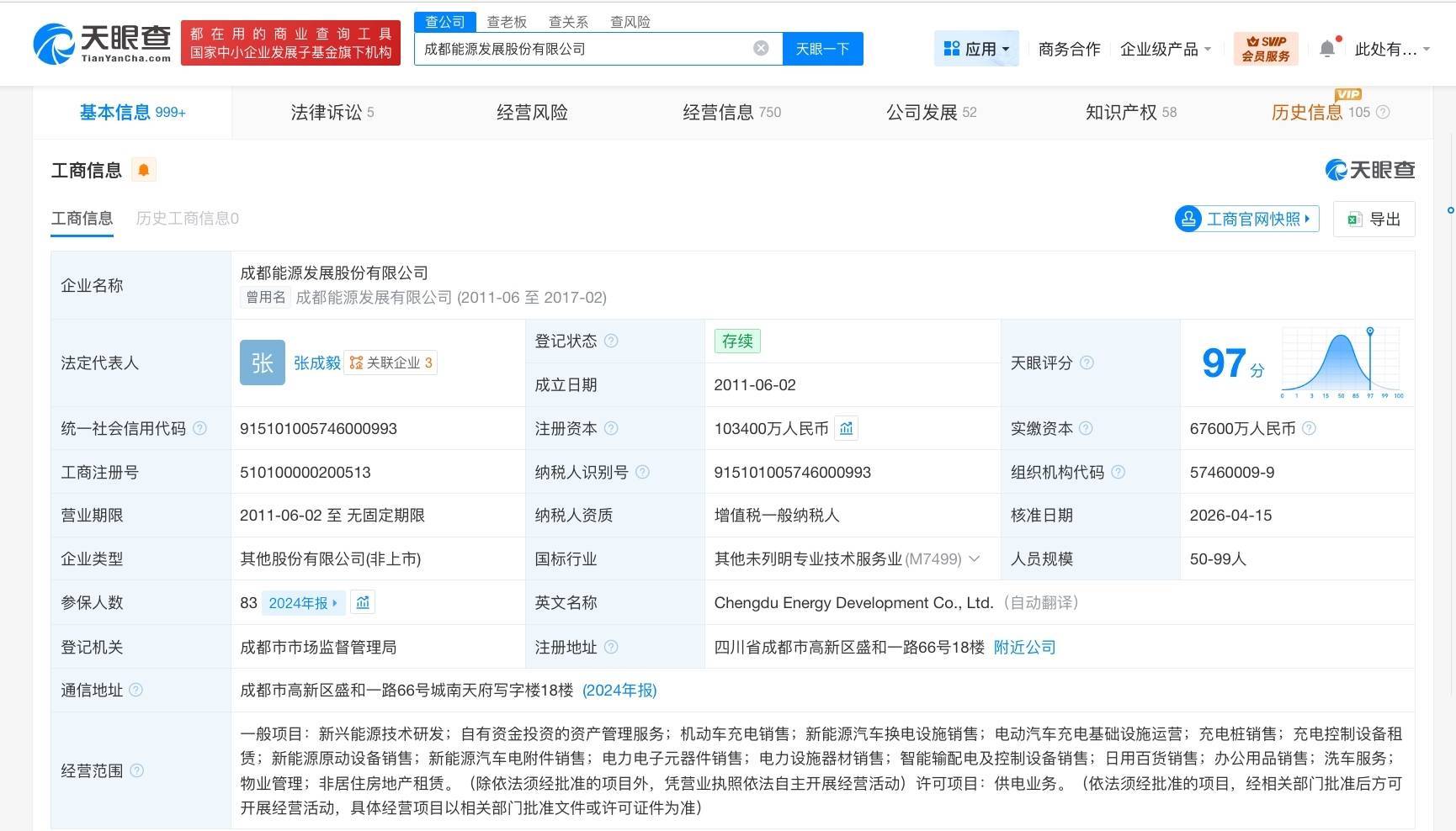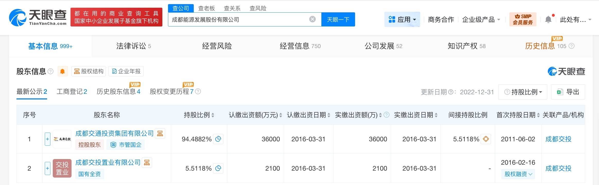 南方财经4月21日电,天眼查App显示,近日有靠谱的股票配资平台吗,成都能源发展股份有限公司发生工商变更有靠谱的股票配资平台吗,注册资本由6.76亿人民币增至10.34亿人民币,增幅约53%。该公司成立于2011年6月,法定代表人为张成毅,经营范围包括新兴能源技术研发、自有资金投资的资产管理服务、机动车充电销售、电动汽车充电基础设施运营等。股东信息显示,该公司由成都交通投资集团有限公司、成都交投置业有限公司共同持股。