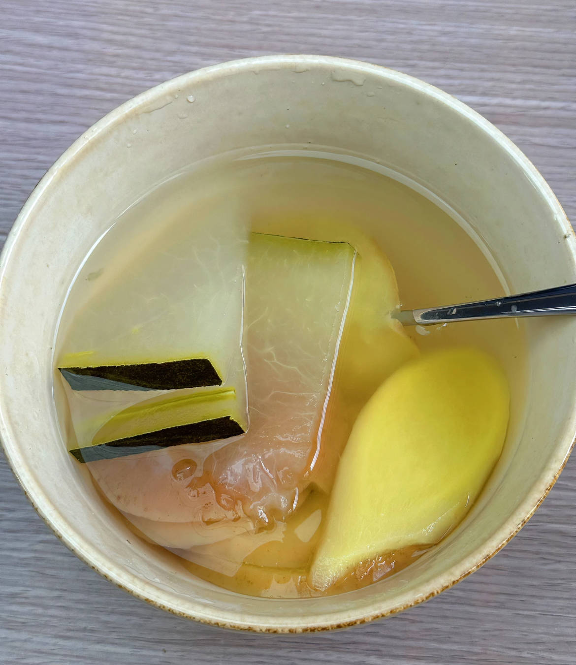 煮好的水带着苹果的微甜,喝起来特别舒服,苹果和冬瓜一起吃掉。